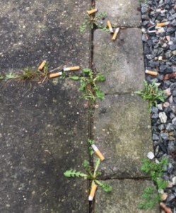 Camilla har taget dette billede i går - er det nødvendigt at sige, at man ikke smider skodder i vores fælles have ? Måske er det nogen udefra, men vi må da være nogen, der ser hvem det er og være i stand til at påpege det ? Vi har små børn, der bor og leger her !